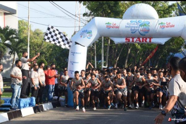 Komandan Pasmar 2, Brigadir Jenderal TNI (Mar) Suherlan, S.E., M.M., M.Sc., CHRMP , melepas peserta lomba 10 K Putera untuk Kategori TNI/Polri.