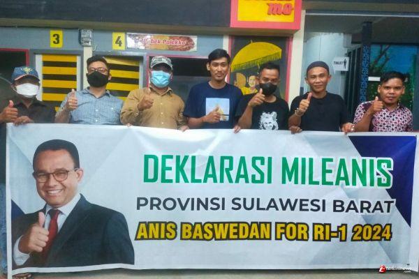 MAMUJU, -- Sekelompok anak muda di Mamuju yang tergabung dalam komunitas Mileanis Sulbar 24 mendeklarasikan Gubernur DKI Jakarta, Anies Rasyid Baswedan maju sebagai bakal calon Presiden Republik Indonesia pada pemilihan 2024 mendatang