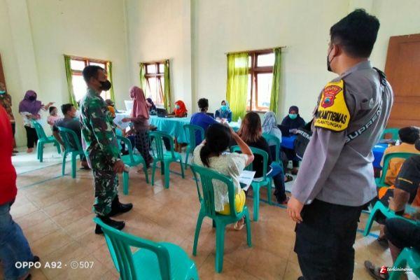 Personel Polsek Plantungan melaksanakan kegiatan pengamanan dan monitoring pelaksanaan vaksinasi covid-19 kepada warga Kecamatan Plantungan Kabupaten Kendal bertempat Balaidesa Mojoagung, Sabtu (6/11/2021).