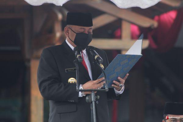 TEGAL – Wali Kota Tegal, H. Dedy Yon Supriyono bertindak sebagai Inspektur Upacara Bendera dalam rangka peringatan Hari Pahlawan ke-76 tahun 2021 di Halaman Pendopo Ki Gede Sebayu Kota Tegal, Komplek Balai Kota Tegal, Rabu (10/11/2021).