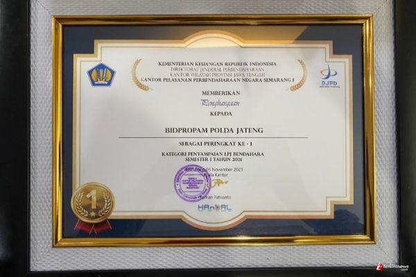 Bidang Profesi dan Pengamanan (Bidpropam) Polda Jateng mendapatkan 4 penghargaan dari Kantor Pelayanan Perbendaharaan Negara (KPPN) Semarang I, Selasa (16/11).