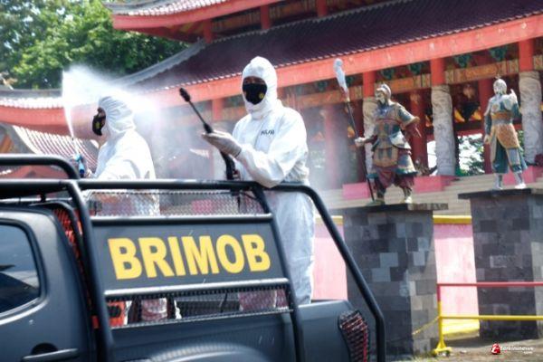 Polda Jateng Bagikan Masker dan Semprot Disinfektan di Kawasan Kelenteng Sam Po Kong