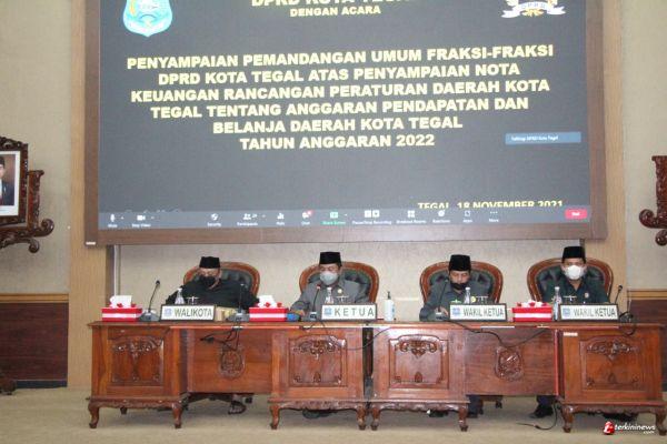 Hal tersebut disampaikan saat pelaksanaan Rapat Paripurna DPRD Kota Tegal dengan agenda Rapat Paripurna Pemandangan Umum Fraksi- fraksi DPRD Kota Tegal atas Penyampaian Nota Keuangan RAPBD Tahun 2022, Kamis (19/11/2021) di Ruang Rapat Paripurna DPRD Kota Tegal.