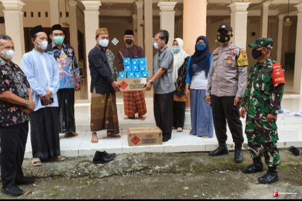 Kapolsek Bersama Kasubag Perencanaan Keuangan Kecamatan Cepiring, Bagikan Masker Dan Sanitizer di Masjid Cepiring