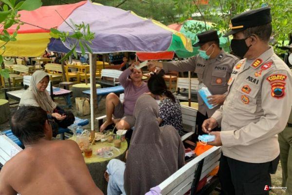 Terbukti dengan kita adakan operasi yustisi di obyek wisata Pantai Indah Kemangi masih saja ada pengunjung yang tidak menggunakan masker diberikan teguran dan dibagikan masker secara gratis", kata Kapolsek Kangkung.