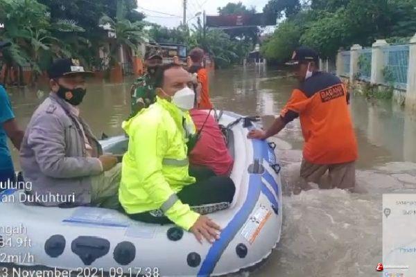 TEGAL - Tingginya curah hujan yang terjadi dalam tiga pekan terakhir hingga Senen (22/11/21) malam membuat 3 Desa di wilayah Kecamatan Dukuhturi Kabupaten Tegal terendam banjir.