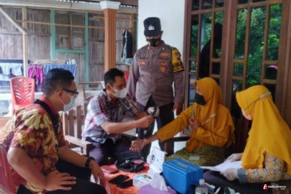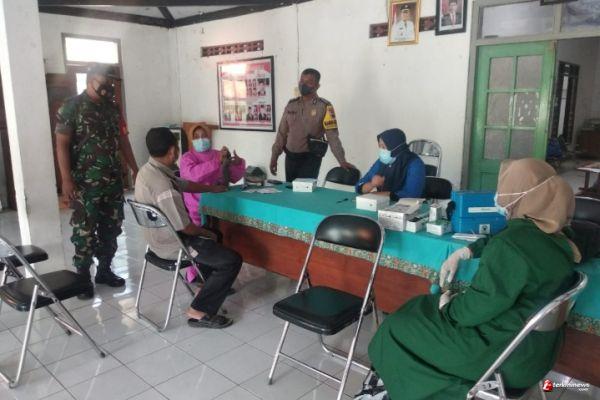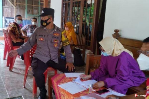 Anggota Polri bersinergi dengan TNI memantau langsung pelaksanaan vaksinasi Covid-19 yang dilaksanakan oleh tenaga kesehatan kepada warga yang sudah terdaftar sebagai penerima vaksin.