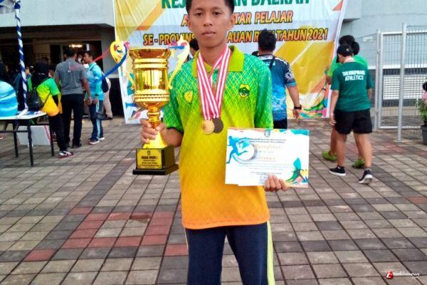 LINGGA - Asuwardi Azra yang akrab disapa Mboy merupakan salah satu pelajar terbaik Senayang berhasil meraih 1 medali emas pada ajang Kejuaraan Daerah Atletik antar pelajar se-Provinsi Kepulauan Riau Tahun 2021 yang diselenggarakan oleh Dinas Pendidikan dan Olahraga Kepulauan Riau, selasa (14/12/21).