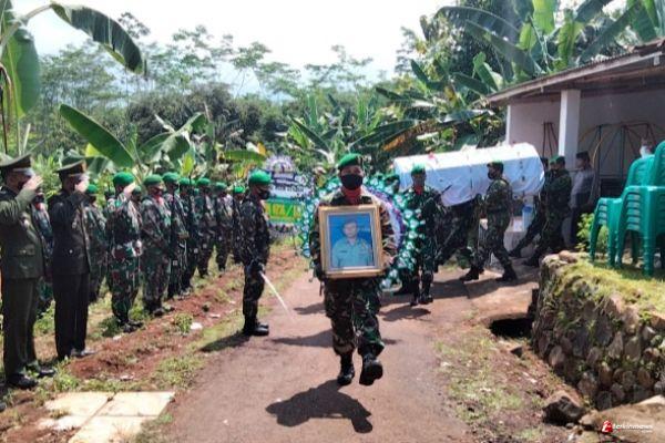 Prosesi pemakaman secara militer di TPU Panji Pengayoman Desa Jerakah Payung Rt 3 Rw 1, Kecamatan Tulis, diawali dengan upacara pelepasan jenazah Almarhum Serma ( Purn ) Gunardi NRP 571273 oleh pihak keluarga kepada TNI, Kamis (16/12/2021) sore.