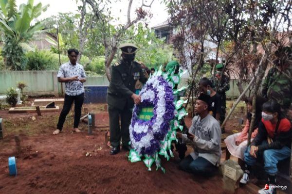 Suasana haru mewarnai prosesi pemakaman jenazah Almarhum Serma ( Purn ) Gunardi NRP 571273 Almarhum meninggal dunia karena sakit komplikasi di rumah sakit QIM pukul 06.30 wib dan meninggalkan 1 orang istri serta 3 orang anak.
