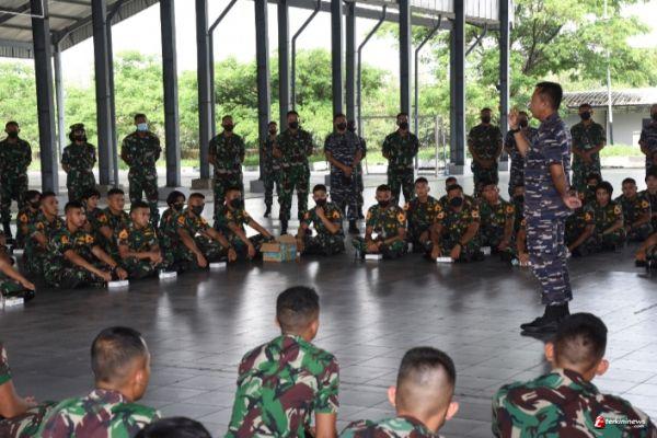 Taruna Akademi Angkatan Laut (AAL) menerima pengarahan dan pembekalan dari Gubernur AAL Mayjend TNI (Mar) Nur Alamsyah, dalam rangka persiapan cuti Natal dan Tahun Baru (Nataru), yang digelar di Indoor Sport Jala Krida Raga, Kesatrian AAL, Bumimoro, Surabaya, Senin (20/12).