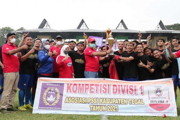 TEGAL – Pertandingan final divisi 1 antara Persega (Desa Margasari) melawan Tunas Muda Kalipasir (Desa Margaayu) yang dimenangkan Persega menutup Kompetisi Divisi 1 dan 2 Asosiasi Kabupaten (Askab) PSSI Tegal 2021. Penutupan secara resmi kompetisi ini dilakukan Sekretaris Daerah Kabupaten Tegal Widodo Joko Mulyono, di Stadion Trisanja Slawi, Minggu (19/12/2021) sore.