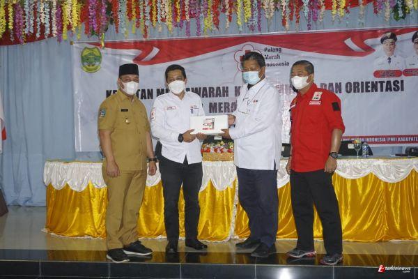 LINGGA - Bupati Lingga, Muhammad Nizar membuka kegiatan Musyawarah Kerja (Muker) dan Orientasi Palang Merah Indonesia (PMI) Kabupaten Lingga, ruang pertemuan Hotel Lingga Pesona, Daik Lingga, Selasa (21/12/2021).