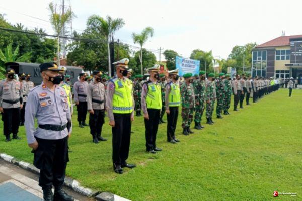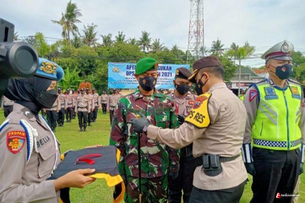 Komandan Kodim 0736/Batang Letkol Arh Yan Eka Putra bersama anggota jajaran Kodim Batang mengikuti Apel Operasi Lilin Candi 2021 di halaman Mapolres Batang, Kamis (22/12/21) pagi.
