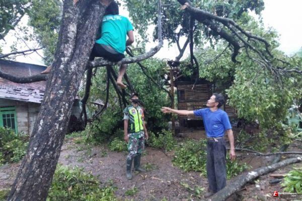 Enam rumah milik warga di Desa Banteng, Kecamatan Tersono, Kabupaten Batang rusak akibat tertimpa pohon tumbang. Mendapat laporan dari warga ada kejadian pohon tumbang Babinsa Koramil 06/Tersono Sertu Joko Riono langsung mendatangi TKP dan berkoordinasi dengan Kepala Desa Banteng untuk melaksanakan pemotongan pohon yang tumbang serta membersihkan ranting-ranting yang menimpa rumah warga, Jum'at 31/12/2021.