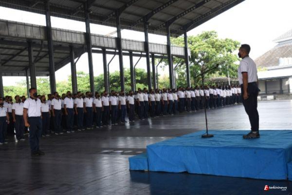 Gubernur Akademi Angkatan Laut (AAL), Mayor Jenderal TNI (Mar) Nur Alamsyah, mengambil Apel Khusus menjelang peringatan Tahun Baru 2022 yang digelar di Indoor Sport Jala Krida Raga, Kesatrian AAL, Bumimoro, Surabaya, Jumat (31/12).