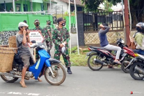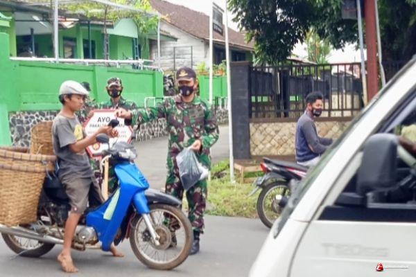 Babinsa menyampaikan aturan yang dilaksanakan sesuai Protokoler Pencegahan Penyebaran Covid-19, serta membagikan masker kepada pengguna jalan yang melintas. Untuk menggugah peningkatan kedisiplinan masyarakat dalam penerapan Protokol Kesehatan (Prokes), Koramil 07/Bandar Kodim 0736/Batang Sertu Ma'afi bersama rekan Banbinsa menggelar operasi yustisi.