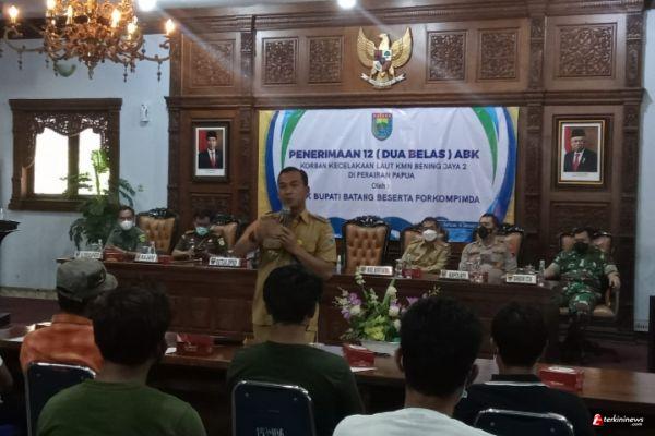 KomandanKodim 0736/Batang Letkol Arh Yan Eka Putra bersama Forkopimda Batang mengadakan tatap muka dengan ABK bening jaya 2 yang mengalami kecelakaan di perairan Papua,di aula kantor Bupati Batang Yang di ikuti kurang lebih 50 orang.Selasa ( 04/01/22 )