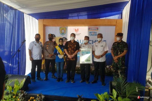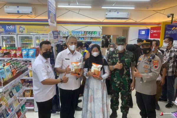 Kapolsek Kaliwungu AKP Irsanto bersama anggota menghadiri dan pengamanan acara launching produk Usaha Mikro Kecil & Menengah (UMKM ) yang dipasarkan di Indomaret Fresh Kaliwungu 2 desa Krajan Kulon Kecamatan Kaliwungu Kendal, Kamis (6/01/2021).