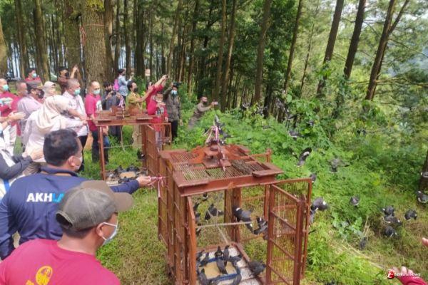 BKSDA Jateng dan Kapolsek Limbangan Lepas 150 Ekor Burung Kerak Kerbau di Wana Wisata Gonoharjo