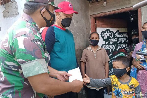 Danramil 01 Brebes, Kapten Infanteri Kunpriyanto SE bersama Lurah Brebes, Slamet Riyadi SIP, tampak menyerahkan bantuan sembako dan uang santunan kepada anak sulung April Triana (27) itu, yang juga seorang pemulung.