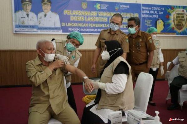 ASAHAN - Pemerintah Kabupaten (Pemkab) Asahan melaksanakan vaksinasi covid-19 dosis lanjutan (Booster) di Pendopo Rumah Dinas Bupati Asahan, Selasa (18/01/2022).