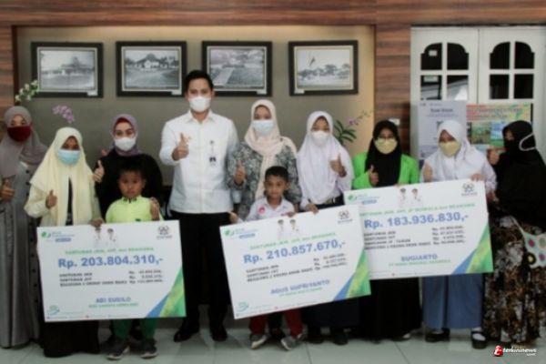 Adapun santunan yang diberikan kepada peserta totalnya ada Rp. 598.598.810. Almarhum Agus Supriyanto menerima santunan sebesar Rp210.857.670 terdiri dari program Jaminan Kematian, Jaminan Hari Tua dan beasiswa 2 orang anaknya.