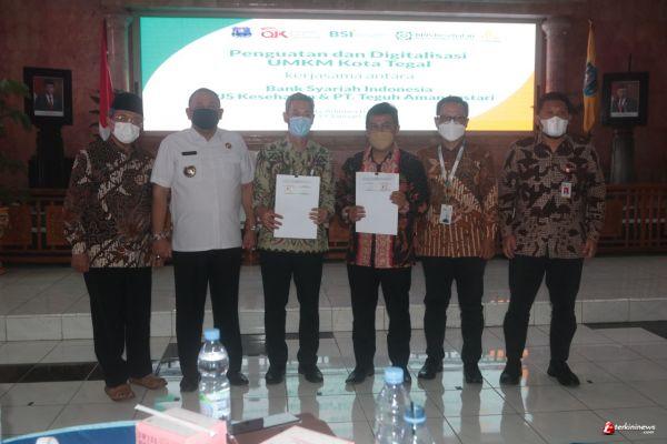 TEGAL - Usaha Mikro, Kecil Menengah (UMKM) Kota Tegal mendapat sentuhan baru dengan penguatan digitalisasi UMKM. Beberapa UMKM Kota Tegal mendapat pelatihan penguatan digital yang di selenggarakan Bank Syariah Indonesia (BSI), BPJS Kesehatan dan UMKM Bangkit (PT. Teguh Aman Santosa), Rabu (19/1/2022) di Ruang Adipura