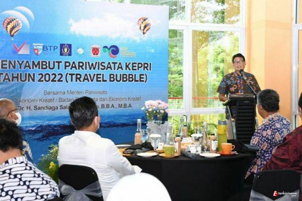 BATAM - Menteri Pariwisata dan Ekonomi Kreatif (Menparekraf) RI Sandiaga Salahuddin Uno memastikan jika travel bubble Batam, Bintan - Singapura (BB- S) akan segera dibuka dan telah disetujui pembukaan wisatawan terbatas dua negara ini oleh Presiden RI Joko Widodo.