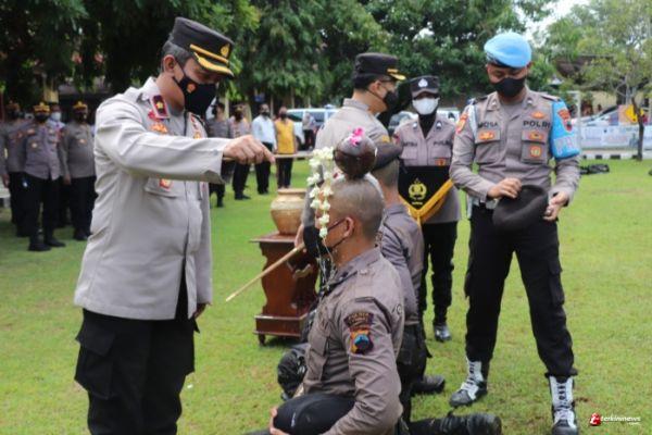 Tradisi Pembaretan Bintara Remaja Polres Kendal dilaksanakan dengan cara berbeda. Kapolres Kendal AKBP Yuniar Ariefianto menyiram air bunga kepada bintara remaja Polres Kendal dalam tradisi pembaretan Jumat 21 januari 2022 di Halaman Mapolres Kendal.