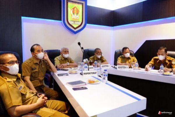 ASAHAN - Bupati Asahan H. Surya, BSc bersama dengan Asisten Pemerintahan dan Kesejahteraan Rakyat, Asisten Pembangunan dan Perekonomian, Kadis Kominfo Kabupaten Asahan, Kepala Inspektorat Kabupaten Asahan, Kebag Pengadaan Barang dan Jasa dan Kabag Pemerintahan Setdakab Asahan mengikuti Rapat Kerja (Reker) Pencegahan Tindak Pidana Korupsi secara virtual di Comend Center Kantor Bupati Asahan dengan Menteri Dalam Negeri (Mendagri), Ketua KPK RI dan Kepala LKPP RI, Senin (24/01/2022).