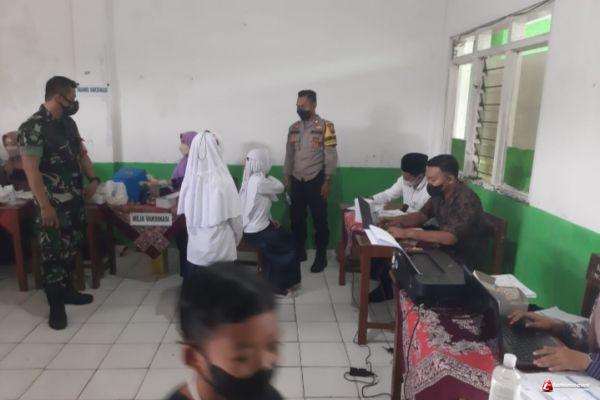 “Kehadiran kami untuk memastikan semua berjalan lancar. Tidak ada kerumunan dan penerapan protokol kesehatan salah satunya memakai masker ,menjaga jarak dan untuk yang tervaksin 468 siswa siswi ,” katanya.