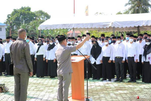 LINGGA - Bupati Lingga Muhammad Nizar melantik secara resmi seluruh anggota Badan Permusyawaratan Desa (BPD) Kabupaten Lingga dihalaman kantor bupati, Rabu (26/01/2022). Sedikitnya, ada 279 anggota BPD yang berasal dari 55 Desa dari 75 desa yang ada di Kabupaten Lingga.