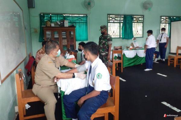TNI/Polri bersinergi melakukan pendampingan vaksinasi Covid-19, kali ini monitoring dan pendampingan vaksin dilakukan di Gedung MTS NH Banyuputih Kecamatan Banyuputih Kabupaten Batang. Senin (31/01/22) pagi.