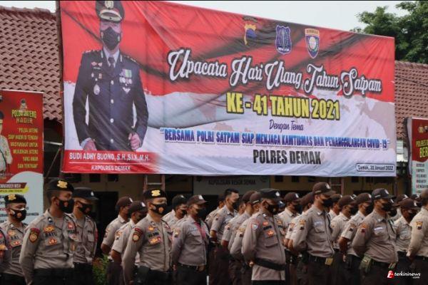Polres Demak gelar upacara peringatan HUT Satpam ke 41 dengan tema "Bersama Polri, Satuan Pengamanan Siap Menjaga Kamtibmas dan Penanggulangan Covid-19", Senin (31/1/2022).