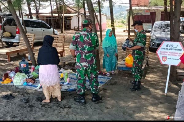 Libur Tahun Baru Imlek, Pantai Jodoh Jadi Sasaran Koramil 03/Gringsing Beri Himbauan Prokes dan Bagikan Masker