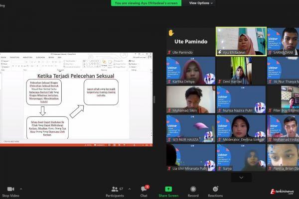 Kemudian dilanjutkan oleh narasumber kedua Ayu Efritadewi S.H.,M.H menjelaskan “bahwa Sasaran Pencegahan dan Penanganan Kekerasan Seksual meliputi Mahasiswa, Pendidik,Tenaga Kependidikan, dan warga kampus”. Kemudian beliau juga mengatakan Perguruan Tinggi wajib melakukan Penanganan Kekerasan Seksual melalui pendampingan, perlindungan, pengenaan sanksi administratif, pemulihan korban. Sesuai dengan Undang-Undang yang mengatur tentang Pelecehan Seksual; KUHP Pasal 285, Pasal 286, Pasal 287, Pasal 289, Pasal 291, Pasal 294, RUU Pencegahan Kekerasan Seksual, Permendikbud No. 30 Tahun 2021 tentang Kekerasan Seksual.