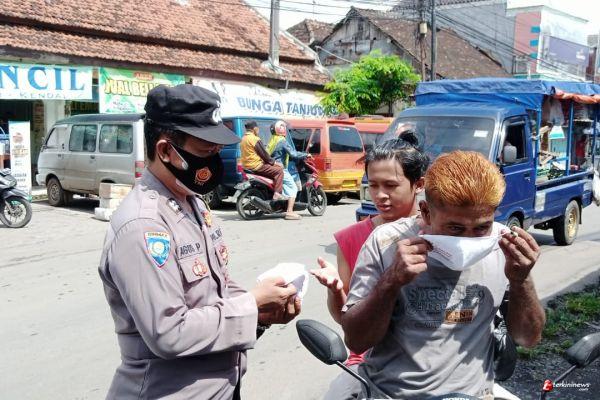 Kapolsek Pegandon Berikan Himbauan Dan Bagikan Masker Pada Masyarakat Di Pasar Pegandon