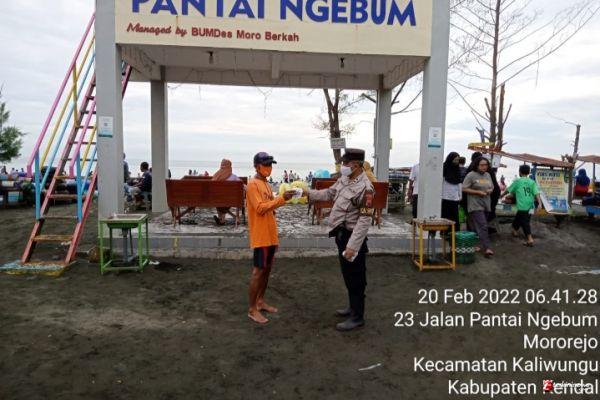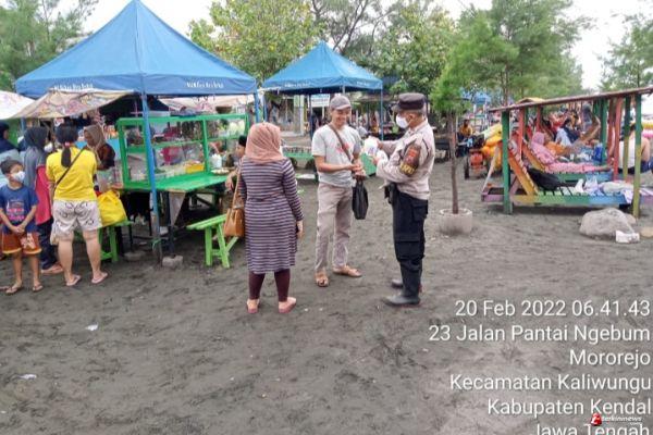 Tempat wisata Pantai Ngebum Desa Mororejo Kecamatan Kaliwungu Kendal menjadi sasaran Personil Polsek Kaliwungu untuk menyambangi warga dan memberikan imbauan protokol kesehatan kepada masyarakat guna menekan angka penyebaran COVID-19.