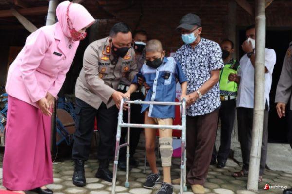 Kaki palsu tersebut diserahkan langsung oleh Kapolres Demak AKBP Budi Adhy Buono di rumah Kiki, Desa Kalikondang, Dukuh Krajan RT 03 RW 01, Kecamatan Demak, Sabtu (26/2/2022).