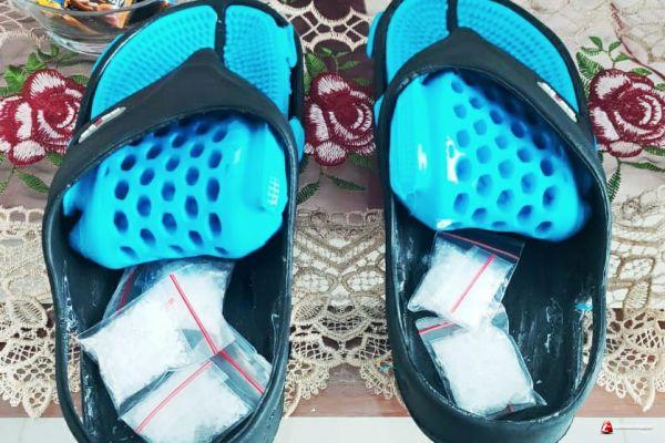Saat penggeledahan di Sandal yang kiri didalamnya ditemukan 3 (tiga) bungkus serbuk kristal warna bening dan disandal kanan terdapat 2 (dua) bungkus serbuk kristal warna bening dari pengunjung yang berinisial (C) akan diberikan kepada (J) Warga binaan Pemasyarakatan (WBP).