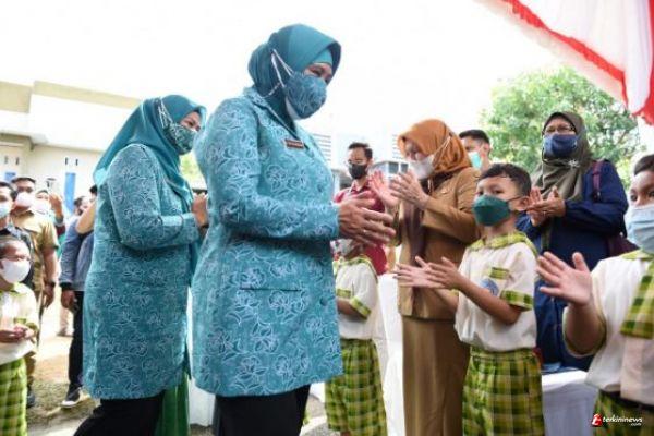 BINTAN - Mengakhiri rangkaian kegiatan peringatan Hari Kesatuan Gerak TP-PKK ke-50, Ketua Umum TP-PKK Tri Tito Karnavian dan Ketua TP-PKK Kepri Hj. Dewi Kumalasari Ansar berkunjung ke Posyandu Mawar di kampung Kolam Renang, Kijang, Bintan, Selasa (08/03/2022).