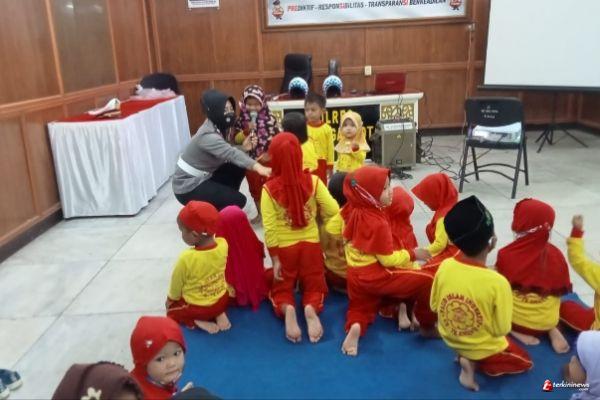 Markas Komando eks Wil Pekalongan Lalu lintas Polres Pekalongan Kota Polda Jawa Tengah diserbu puluhan anak TK KB Amanu Klego Kecamatan Pekalongan Timur, Kamis, (18/03/2022).