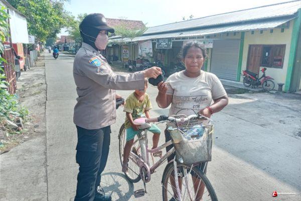 Polsek Cepiring melaksanakan himbauan Prokes dan pembagian masker di Jalan Menur Desa Karangayu Kecamatan Cepiring Kabupaten Kendal. Rabu (06/04/2022)