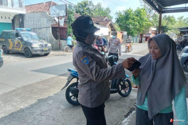 Wakapolsek Cepiring, bersama Kanit Binmas, dan Anggota piket jaga melaksanakan himbauan kepada warga masyarakat yang melintas di Jalan Menur Desa Karangayu.