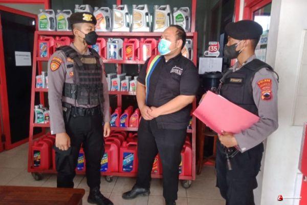 Terlihat personel Sat Samapta sambangi Toko emas dan berikan Pesan pesan kamtibmas, baik kepada petugas keamanan maupun pengunjung, untuk selalu meningkatkan kewaspadaan.