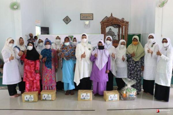 BINTAN - Ketua Badan Kontak Majelis Taklim (BKMT) Provinsi Kepri Hj. Dewi Kumalasari Ansar bersama BAZNAS Kepri menyerahkan bantuan sosial berupa 200 paket sembako untuk kaum dhuafa di Kampung Rekoh, Desa Penaga, Kecamatan Teluk Bintan, Bintan, Sabtu (16/4).