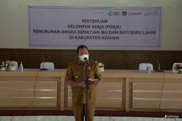 ASAHAN - Bupati Asahan yang diwakili oleh Asisten Perekonomian dan Pembangunan Drs. Muhilli Lubis membuka secara resmi Pertemuan Kelompok Kerja (POKJA) Penurunan Angka Kematian Ibu dan Bayi Baru Lahir di Kabupaten Asahan, Selasa (19/04/2022)