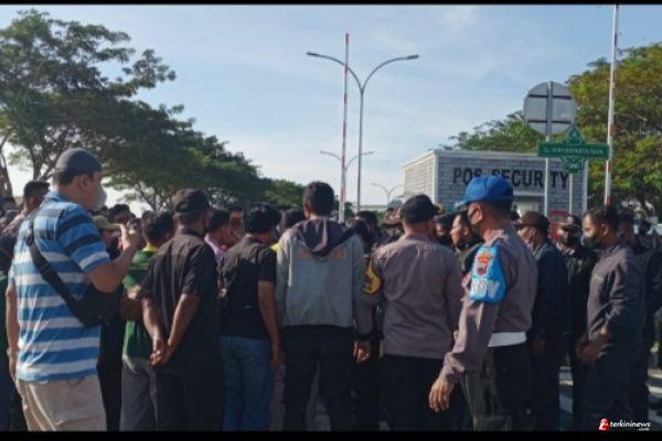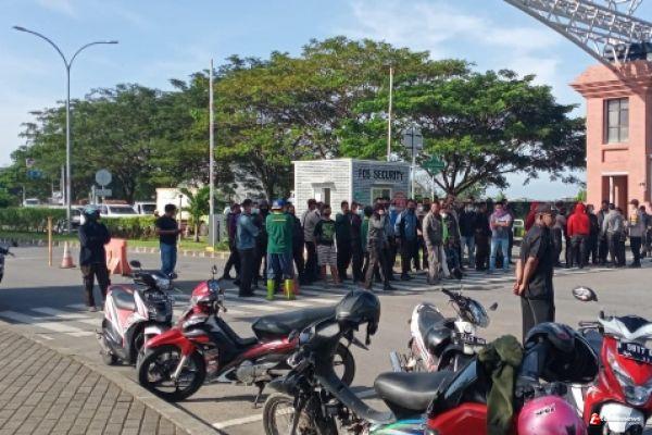 Imbas di PHK, Puluhan Outsourcing Security dan Pekerja Taman Kawasan Industri Kendal Blokade Pintu Gerbang Utama