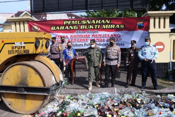 Pemusnahan Botol Minuman Keras beserta Isinya itu dengan cara digilas menggunakan alat berat. Dengan dilakukannya pemusnahan tersebut diharapkan keamanan dan ketertiban masyarakat tetap terjaga dan mengurangi potensi gangguan Kamtibmas di Kota Pekalongan.